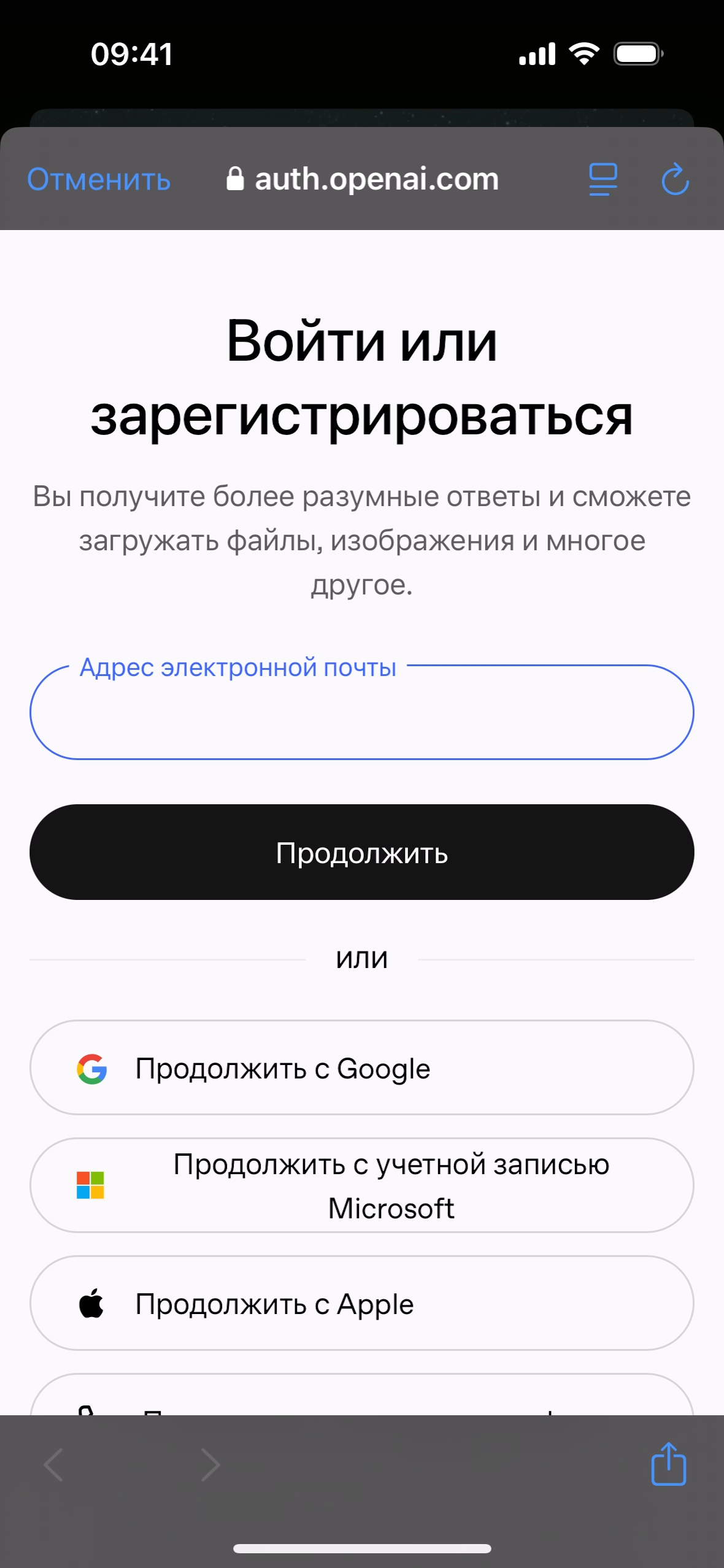 Продолжить с Email